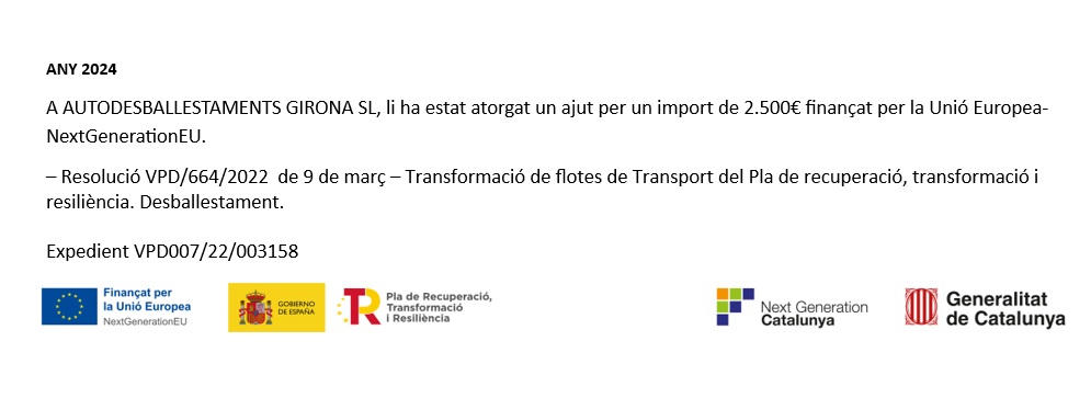 Benvingut a la web de Autodesballestaments Girona, si no troba el recanvi que busca, ens pot trucar i amb molt de gust l’atendrem.